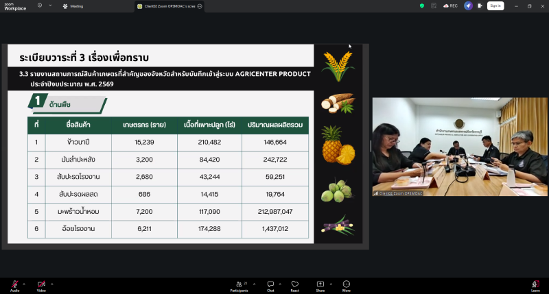 วันที่ 25 มีนาคม 2569 นายเฉลิม นวมนิ่ม สหกรณ์จังหวัดราชบุรี เป็นประธานใน การประชุมคณะกรรมการขับเคลื่อนงานด้านการเกษตรระดับจังหวัด จังหวัดราชบุรี ครั้งที่ 2/2569 จุดประสงค์เพื่อให้การขับเคลื่อนการดำเนินงานนโยบายสำคัญของกระทรวงเกษตรและสหกรณ์เป็นไปอย่างมีประสิทธิภาพและบรรลุเป้าหมาย โดยนายนที สะอาดนัก ผู้อำนวยการศูนย์ถ่ายทอดเทคโนโลยีการสหกรณ์ที่ 15 จังหวัดเพชรบุรี เข้าร่วมการประชุมผ่านระบบ Zoom Meeting