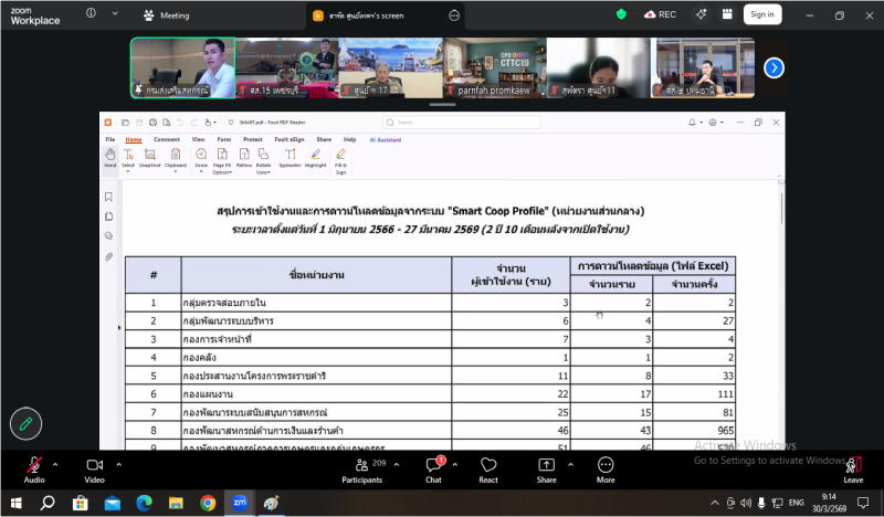 วันที่ 30 มีนาคม 2569 นายสุรินทร์ วทัญญู ผู้อำนวยการศูนย์เทคโนโลยีสารสนเทศและการสื่อสาร เป็นประธานในการชี้แจงซักซ้อมและทำความเข้าใจการใช้ระบบโปรไฟล์สหกรณ์ “ Smart Coop Profile ” จุดประสงค์เพื่อการใช้ประโยชน์แหล่งข้อมูลของสหกรณ์ที่สามารถสังเคราะห์ วิเคราะห์ข้อมูล รวมทั้งการแนะนำส่งเสริมสหกรณ์ได้อย่างมีประสิทธิภาพ ตลอดจนสนับสนุนการปฏิบัติงานของกรมส่งเสริมสหกรณ์ โดยนายนที สะอาดนัก ผู้อำนวยการศูนย์ถ่ายทอดเทคโนโลยีการสหกรณ์ที่ 15 จังหวัดเพชรบุรีและทีมงาน เข้าร่วมโครงการผ่านระบบ Zoom Meeting
